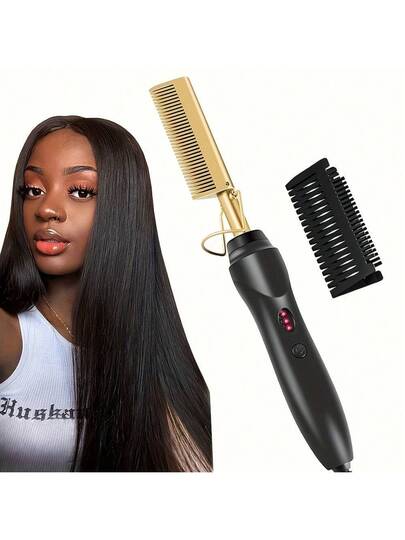 K·SKIN 2-In-1 Electric Hair Straightener Brush, Copper Color, Dual Use For Wet/Dry Hair, Fast Heating, Anti-Scald Shell, Suitable For Home Use And Gift - Multicolor - View 1