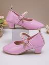 1 Pair Girls' Beautiful And Dreamy Low Heeled Round Toe Princess Shoes, Dance Shoes, Comfortable Leather Shoes Suitable For Parties And Gatherings, Multifunctional Essential