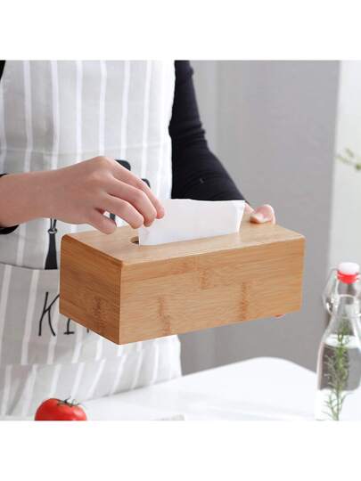 KMT Bamboo Tissue Box Holder Storage Paper Tissue Cover Wood Napkins Organizer Home Decoration - Yellow - View 1