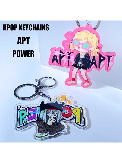 KOREA INS STYLE Acrylic KEY CHAINS, KPOP IDOL ROSÉ 'APT' Pink Creative Patterns &  'POWER' Pattern ,Car Keychain Pendant Keychain Holder Key Ring Mobile Phone Bag Hanging Jewelry Gifts,Special Fans Gifts - Multicolor - View 1