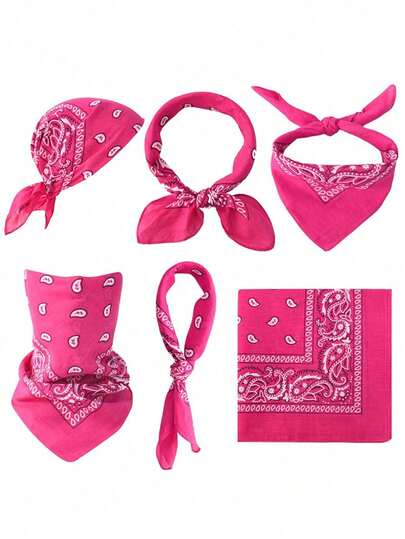 1pc Unisex Cashew Print 21.65" X 21.65" Bandana, Versatile For Outdoor Cycling, Neck Warmer, Headwrap For Dress - Hot Pink - View 5
