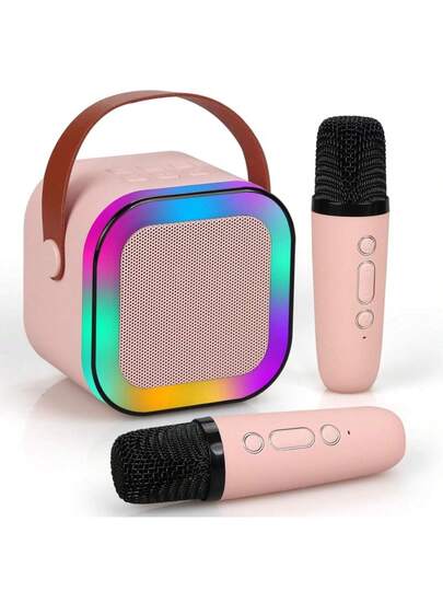Pink Karaoke Machine Mini Wireless Speaker With Microphone, With Colorful Led Light, Bass Stereo 3D Illuminated Speaker With Party Light, Birthday Gift, Karaoke Machine For Adults And Kids, Portable Karaoke Machine With 2 Wireless Bluetooth Microphones, Best Gift Birthday, Parties With Carrying Handle/Echo/Vocal Cut - Multicolor - View 1