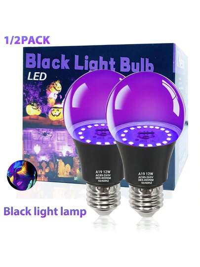 Kasotile (1/2 Packs ) UV LED Black Light Bulbs , 12W LED Black Light Light Bulb For Halloween Decoration, E27/E26 Base Black Lights UVA Level 385-400nm, Blacklight Bulb For Glow In Dark, Body Paint Fluorescent Poster Glow Party - Black - View 1
