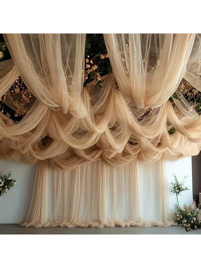 1pc Elegant Champagne Color Chiffon Sheer Curtain, Suitable For Indoor/Outdoor Party Atmosphere Decoration, Wedding Ceremony Decor - Champagne - View 11