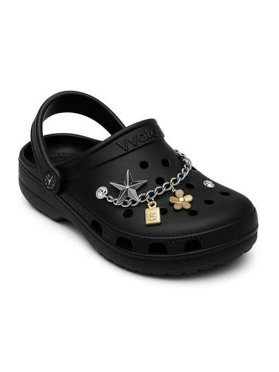 **Yvate Babucha Flip Flop 100% EVA Perforated, With Random Star Pendants, Chain And Others – Light And Comfortable**Black - Black - View 1