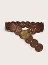 High Repeat Customers1pc BOHO Style Waist Belt For Girl, Vintage Bronze Floral Hollow Round Buckle Rhombus Eyelet Patchwork Brown Belt, Suitable For Skirts, Pants, Sweaters, Shirts, Coats, Party, Festival, Birthday, Valentine's Day Gift