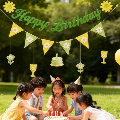 Kids Boys Girls Daisy Floral Green White Flower Leaf Cake Birthday Party Backdrop Wall Hanging Banner - Multicolor - View 14