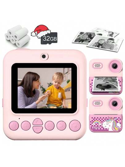 Kids Instant Print Camera, 2.4" HD Screen, 1080P Shooting, Comes With 32G SD Card And Printing Paper, 1080P HD, Fun Gift For 3-12 Years Old Boys And Girls, Toy Camera - ZSK-multicolor - View 1