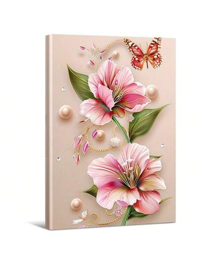 Pink Flowers Decorated With Pearls And Butterflies. Large Wooden Framed Wall Painting Artist Home Decoration Oil Painting - Bedroom, Bathroom, Living Room, Office, Kitchen, Christmas Gifts - 1 Piece - Multicolor - View 1