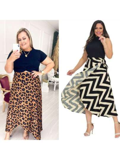 Kit 2 Plus Size Long Wrap Skirt With Adjustable Tie, Multiple Ways To Wear
