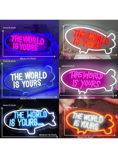 The World Is Yours Neon Wall Decor Dimmable Spaceship LED Neon Sign USB Powered For Bedroom Wedding Neon Sign Valentine's Day Bar Club Decoration Birthday Party Gift - Multi-color light - View 1