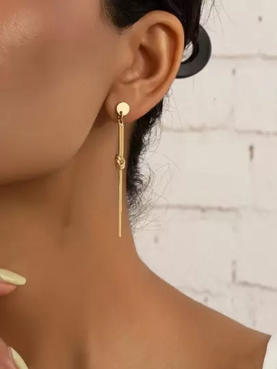 Knot Decor Drop Earrings - Yellow Gold - View 1