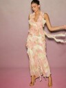 L'Amorae Pleated 3D Flower Strap Tie Detail Maxi Dress