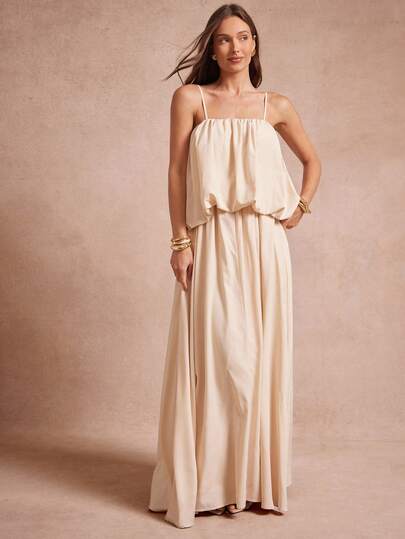 L'Amorae Women's Summer Solid Color Pleated Loose Fashion Spaghetti Strap Dress - White - View 1