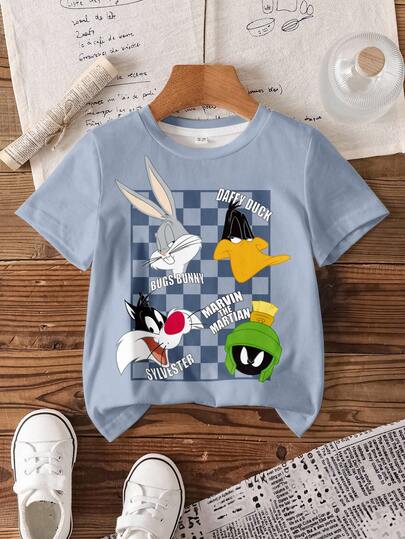 LOONEY TUNES X SHEIN Young Boys Crew Neck Short Sleeve Casual Cartoon Cute Print Summer T-Shirt, - White - View 1