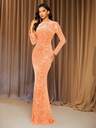 LOVE&LEMONADE Contrast Sequin Beaded Detail Mermaid Hem Formal Dress White Elegant Prom Evening Wedding Guest Gown, For Graduation, Dinner Party Dress