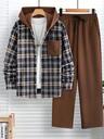 Men's Loose Drawstring Hoodie And Pants Set, With Letter Embroidery, Casual Fluffy Outfit, For Winter