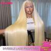 34Inch 613 Blonde Lace Front Wig Human Blended Hair 13x4 Transparent Lace Straight Blonde Lace Front 613 HD Lace Frontal Wig 200% Density Pre Plucked With Baby Hair Blonde Colored Hair 8-34 Inch Wig