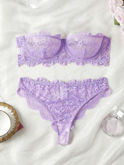 Lace Pattern Design Lingerie Set, Strapless Bra And Panty, Sexy Women's Sleepwear Set, Sexy Women's Underwear, Women's Panties, Sexy Women's Sleepwear Set, Sexy Women's Apparel, Sexy Lingerie Set, Women's Lingerie Set, Women's Set - Purple - View 1