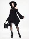 Sweetra Women's Metal Flower Decor Ruched Shoulder Ruched Hem Fashionable Dress