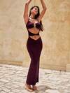 Sweetra Sexy Plunging Neckline Solid Color Bodycon Vintage High-End Elegant Long Dress, Brown