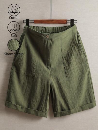 EMERY ROSE Ladies' Vacation Leisure Solid Color Linen Shorts - Army Green - View 1