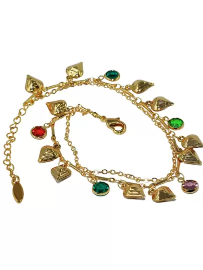 Laminated Gold Bracelet With Pendant - Heart and Colored Zirconia - View 1