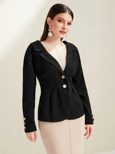 Modelyn Lapel Neck Single Breasted Coat - Black - View 1