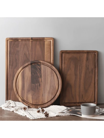 Large Rectangular/Round Wooden Cutting Board With Juice Groove - Double-Sided Kitchen Chopping Board For Vegetables, Meat, Cheese And Serving Platters | Durable, Kitchen Accessory, Cutting Board, Eid Al-Fitr - Brown - View 8