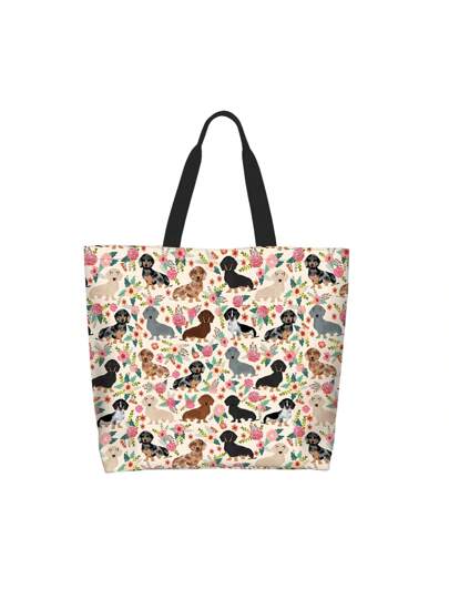 Large Size Men's Handheld/Shoulder Bag With Flower & Dog Pattern College Bag Hot - Beige - View 1