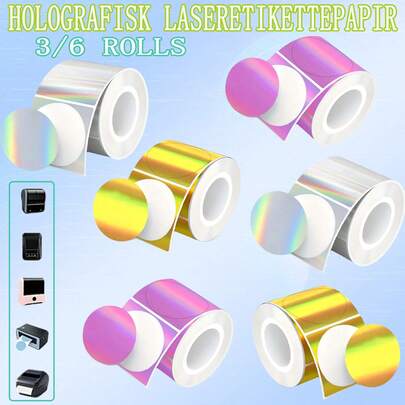 Laser Holographic Thermal-Sensitive Label Stickers, 50*50mm Printable Holographic Thermal Labels, Self-Adhesive Thermal-Sensitive Label Stickers, Suitable For Signage, Office Use, And Logo Labelling. - Multicolor - View 7