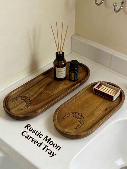 Laser Moon Wood Grain Decorative Tray - Bathroom Tray, Bathroom Storage Items, Bathtub Tray, Mirror Tray, Wooden Tray, Bathroom Accessories, Home Decoration, Makeup Room Decoration, Laser Display Tray, Suitable For Placing Candles, Perfumes, Soaps, Toiletries, Nordic Style Home Decorations, Ramadan Festival Gifts. - Brown - View 14