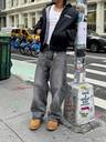 Straight Leg Cotton Wash Denim Jeans With Slanted Pockets, Personalized Versatile Wide Leg Washed Denim, Casual Straight Loose Fit Couple Matching