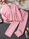 Left Mama Girls Elegant Minimalist Collared Long Sleeve Dress With Vest Top Set, Spring/Autumn