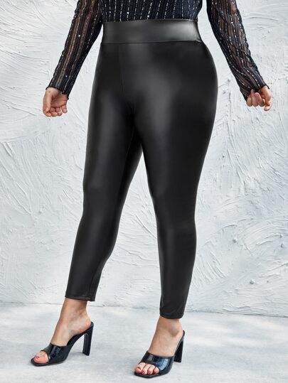 Celure Plus PU Leather Skinny Leggings - Black - View 1