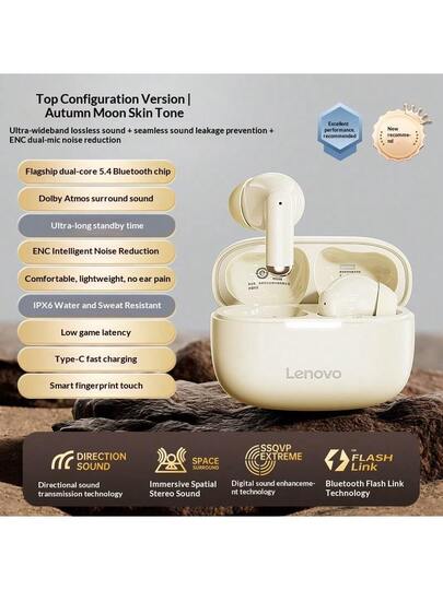 Lenovo EA110 Wireless Headset Bluetooth 5.4 Intelligent Touch Control Headphones Long Lasting Battery Life Support Android ISO - Beige - View 1