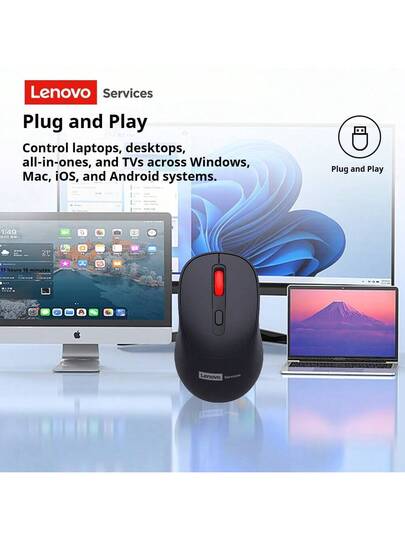 Lenovo N02 Wireless Mouse 2.4G Wireless Connection, 4-Button Strong Anti-Interference Capability, Intelligent Sleep Mode For Longer Battery Life, Portable For Office Use, Optical Laptops, Desktops, And Tablets. - Black - View 5