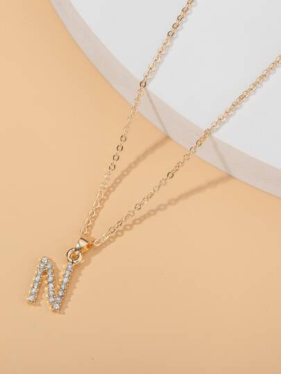 Letter Charm Rhinestone Decor Necklace - Yellow Gold - View 1