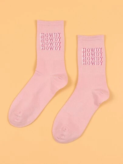 Letter Graphic Crew Socks, Fall Socks - Baby Pink - View 1