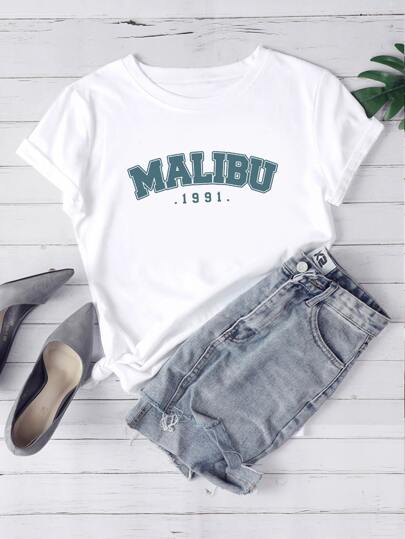 SHEIN LUNE Letter Graphic Short Sleeve Tee - White - View 1