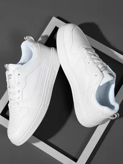 Letter Patch Decor Lace-up Front Skate Shoes, Women's Casual Sports Shoes With White Upper And Letter Design - White - View 1
