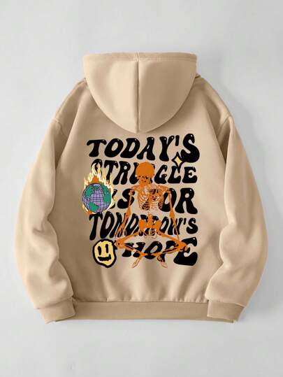 SHEIN EZwear Letter & Skull Printed Drop Shoulder Hoodie - Black - View 1