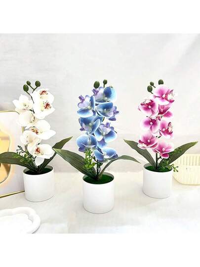 Lifelike Artificial Phalaenopsis Orchid Plant With Pot - Vivid Pink, White, Purple Realistic Fake Flowers, Home Decor, Wedding, Holiday, Kitchen Table Decor, Maintenance-Free Butterfly Decoration Essential New Year Holiday Gift - Multicolor - View 1