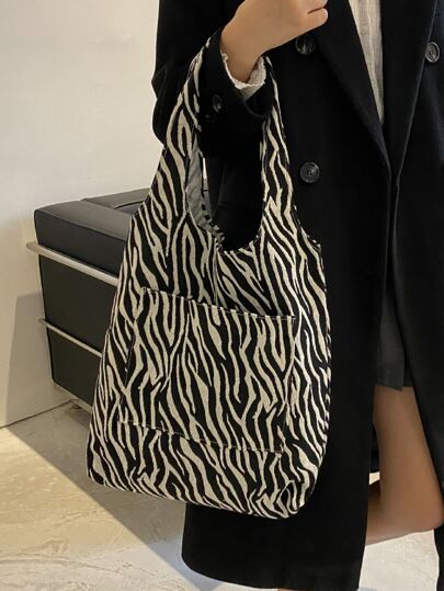 Lightweight,Business Casual Zebra Striped Pattern Shopper Bag For Teen Girls Women College Students,Rookies & White-Collar Workers Perfect For Office,College,Work ,Business,Commute,Outdoors, Travel, Outings, School Supplies,School Bag,Back To School,School Tote Bag,Large Capacity,Lightweight,Portable,Classic CasualTeacher, Tote Bag Large, Best Fall Inspo Ideas - Black and White - View 1
