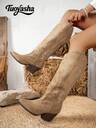 Fall/Winter 2025 Fashionable Boots V-Cut Versatile Comfortable Slim Antiskid Western Style Embroidered Pointed Toe Vintage Chunky Heel Suede Tall Boots For Women,Cowboy Boots
