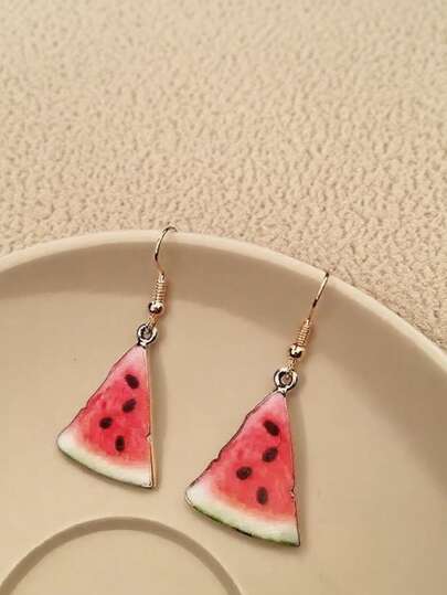 Limited Summer Collection! Handcraft Watermelon Slice Dangle Earrings, Cute Fruit Style Earrings - Watermelon Slice Ear Hooks - View 1