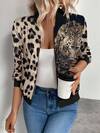 Keke Bloomly Christmas Women's Lightweight Zip-Up Casual Baseball Jacket, Cheetah Print, Fashion