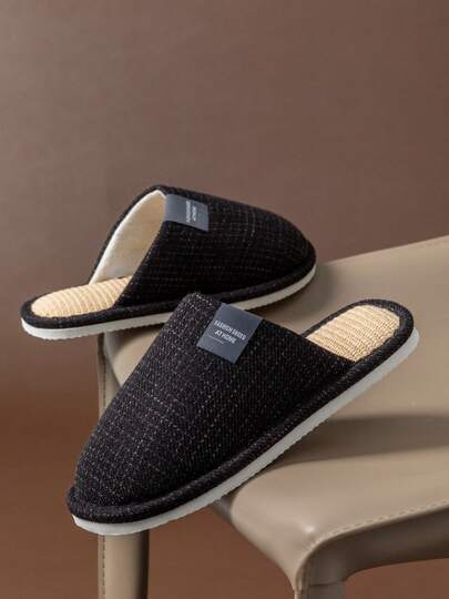 Linen Slippers For Men, Indoor Home Non-Slip Breathable Absorbent Soft Bottom Fabric Slip-On Mule Slippers For Spring, Autumn And All Seasons - Black - View 1
