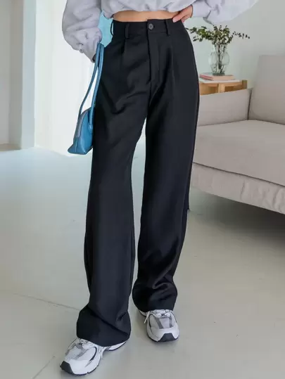 Livesso Casual Business Solid Straight Leg Pants,Women Dress Pants - Black - View 1