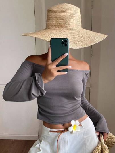 Livesso Women's Off-Shoulder Long Sleeve Sunscreen Shirt - Grey - View 1